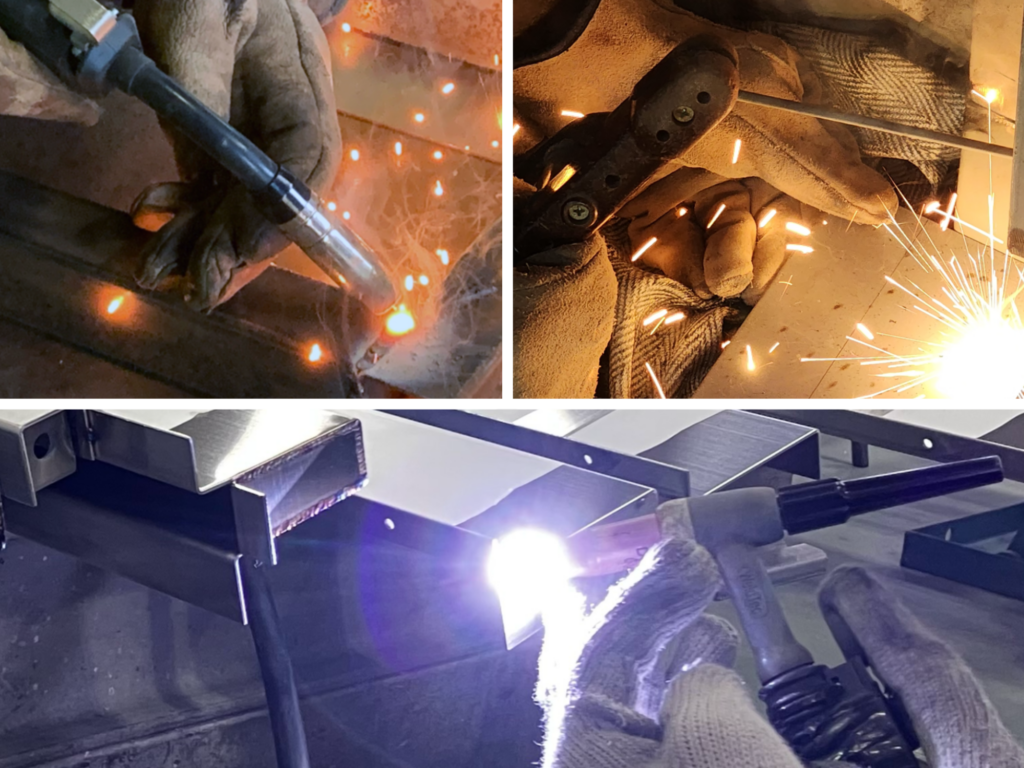 アルゴン溶接、手溶接、半自動溶接、材質や製品の各部分に合わせて溶接します。
