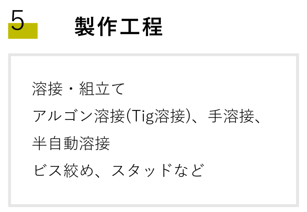 溶接、接着ノリ、両面テープ、ビス絞め、スタッド、リベット等による組立加工